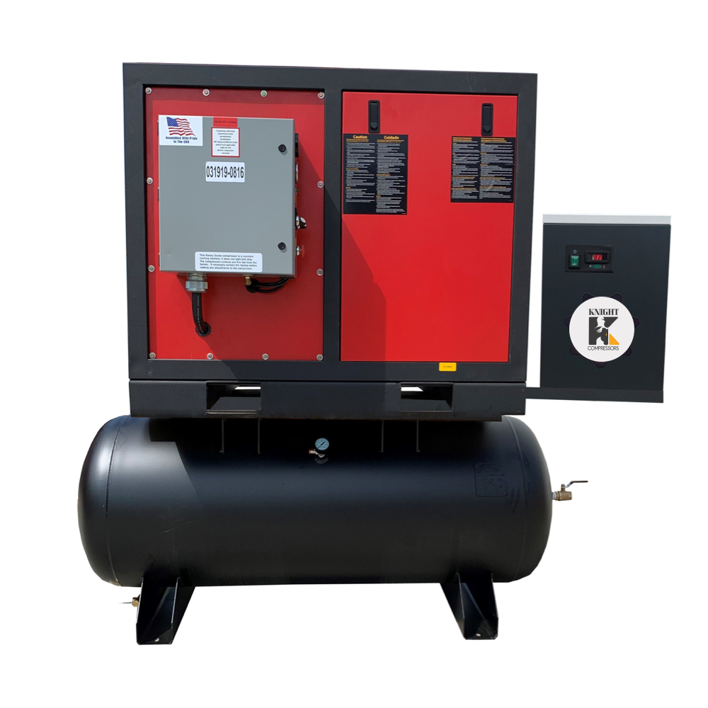 20hp Rotary Screw Compressor, 120 Gallon 200PSI ASME/CRN certified air receiver, Refrigerated air dryer with automatic condensate drain